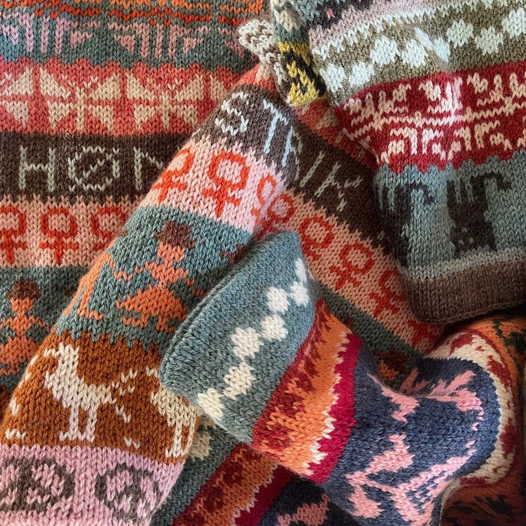 Dette er en spændende og anderledes workshop, hvor jeg veksler mellem praktisk undervisning og fortællinger om 70 érnes kvinde oprør og hønsestrikkens oprindelse. Så er du nysgerrig på at vide mere om Hønsestrik og denne farverige del af vores fælles kulturarv, så kom og bliv klogere på både teknikkerne, de politiske budskaber og historien bag.
