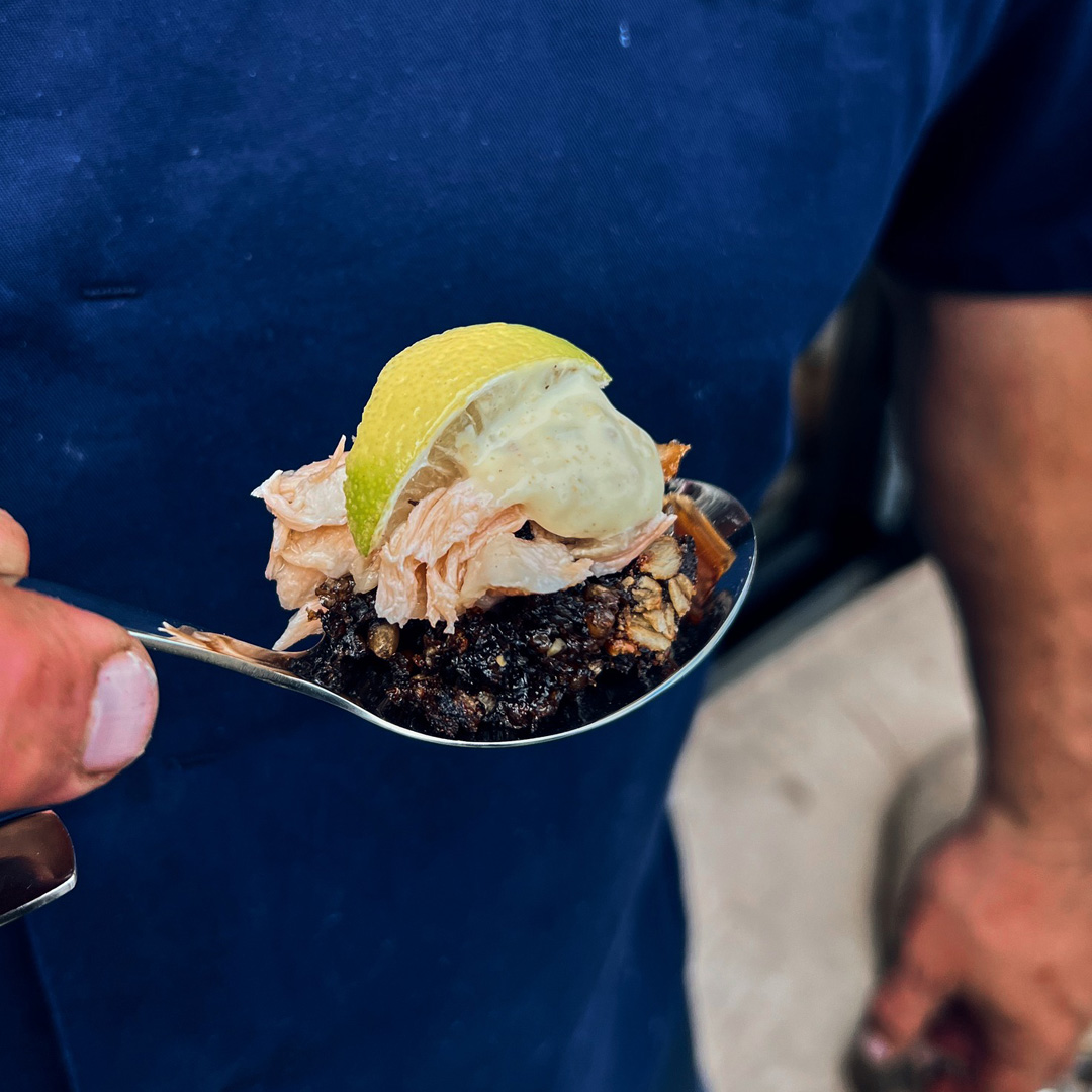 Oyster King Jesper Danneberg Voss – bedre kendt som Oyster King – serverer lækre sandwich med flammlaks.